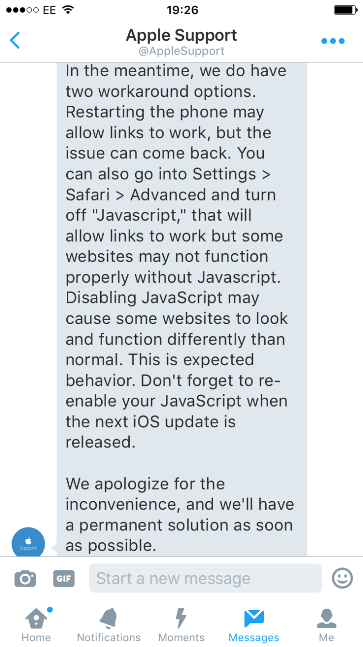 Since this issue has been growing for days I must admit I am frankly shocked that Apple Support on Twitter (@AppleSupport) are constantly replying with the same line as users turn to them for a response. As far as customer service goes I think this shows particularly bad form.