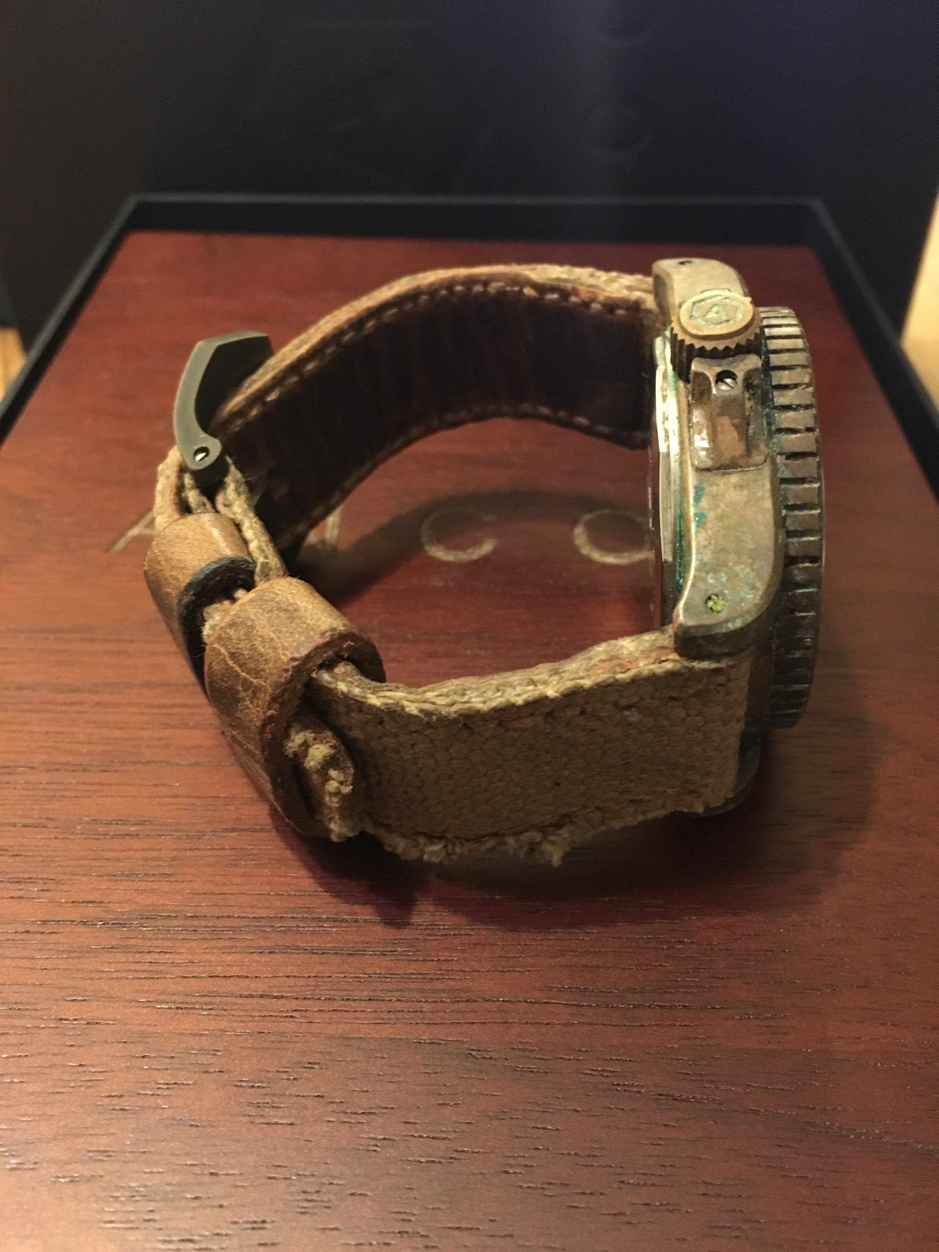 The watch already had the start of a natural patina as can be seen in the picture, but not close to how I wanted the watch to look “recovered from the ocean” or “Badass”.