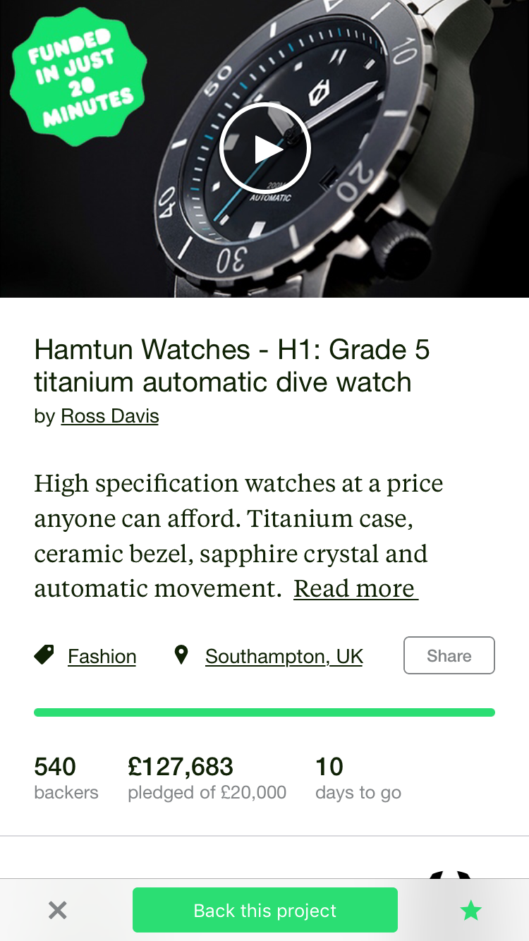 Ross and his Kickstarter did really well and funded his £20K goal in 20 minutes of going live, with 10 days to go this is his current funding