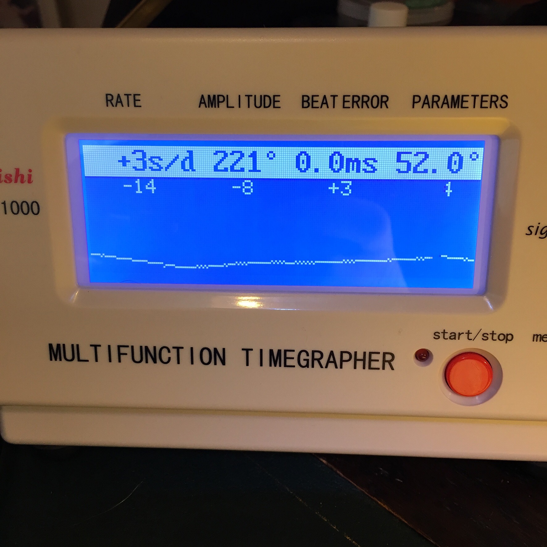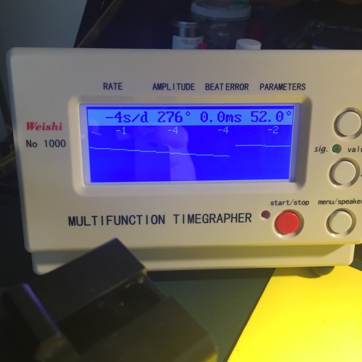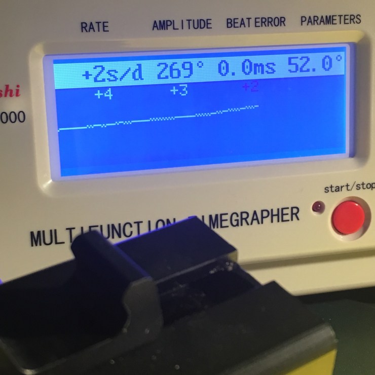 276 degrees or there abouts either way up when flat – perfectly acceptable. Ready to put the movement into a watch.