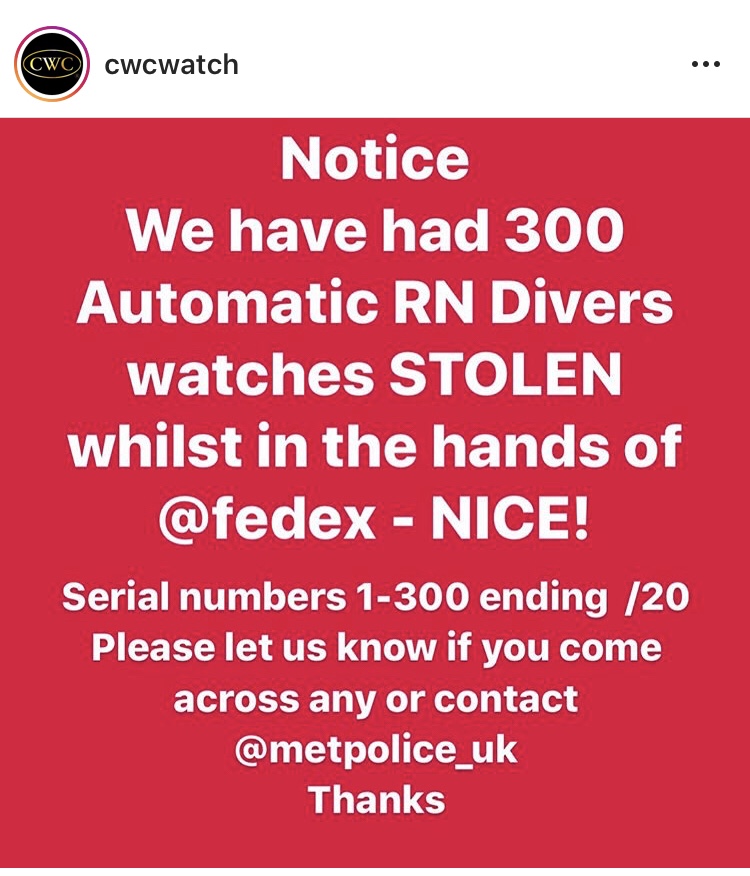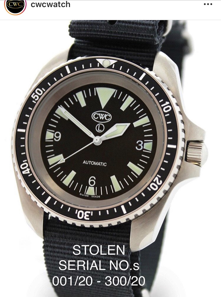 CWC has had 300 Automatic RN Dive Watches stolen – serial numbers 1-300 ending /20