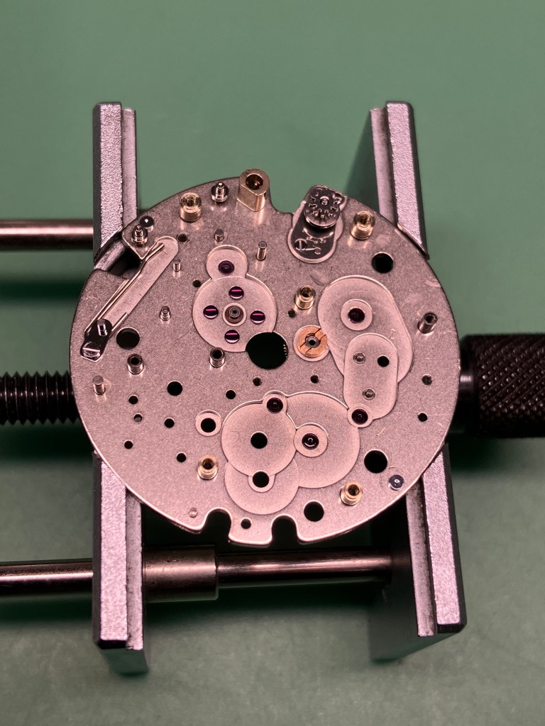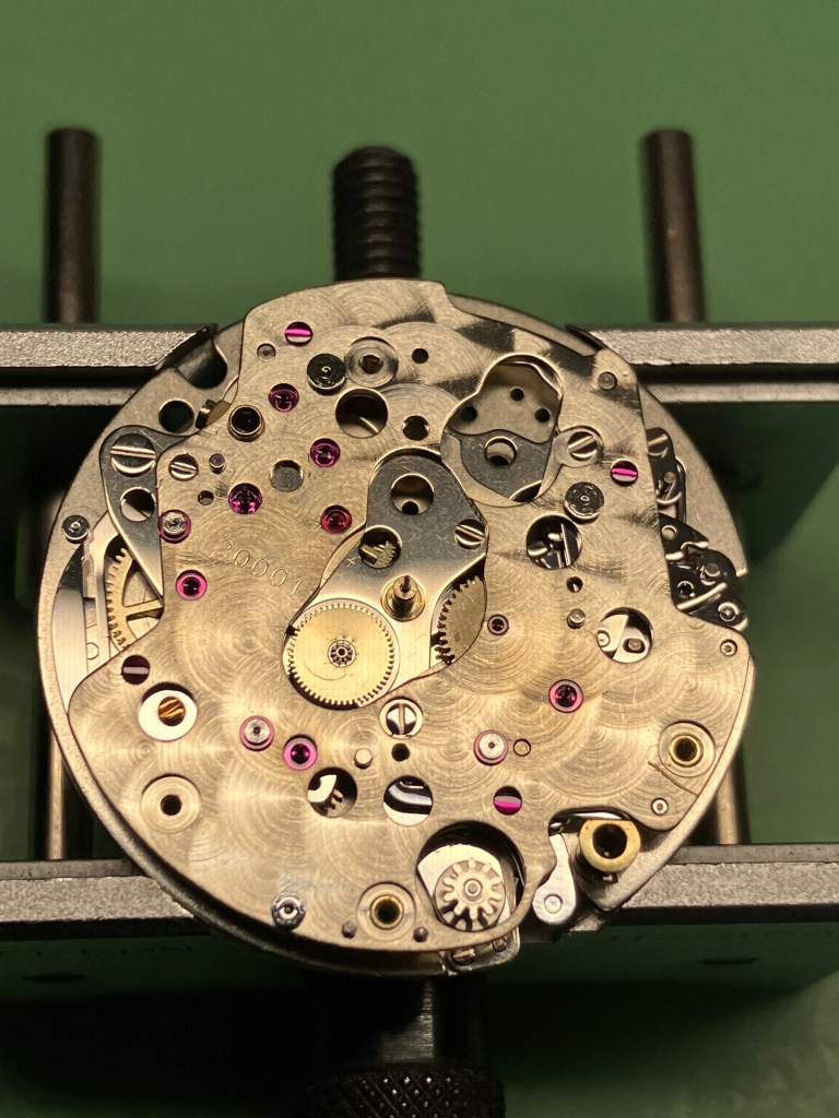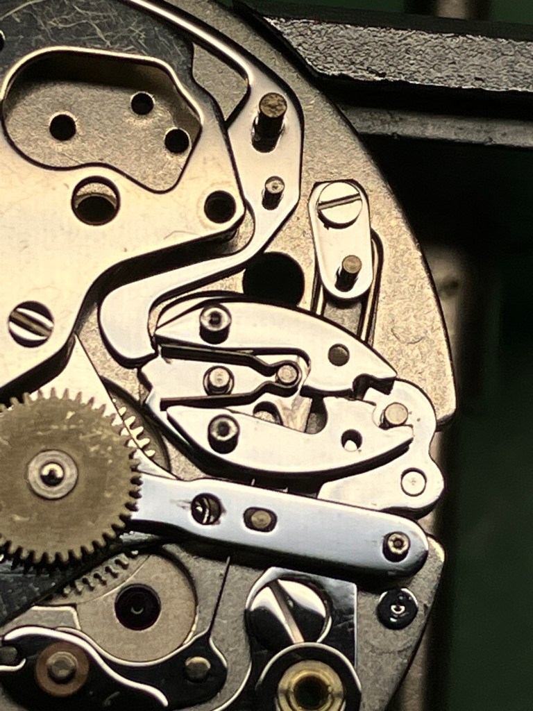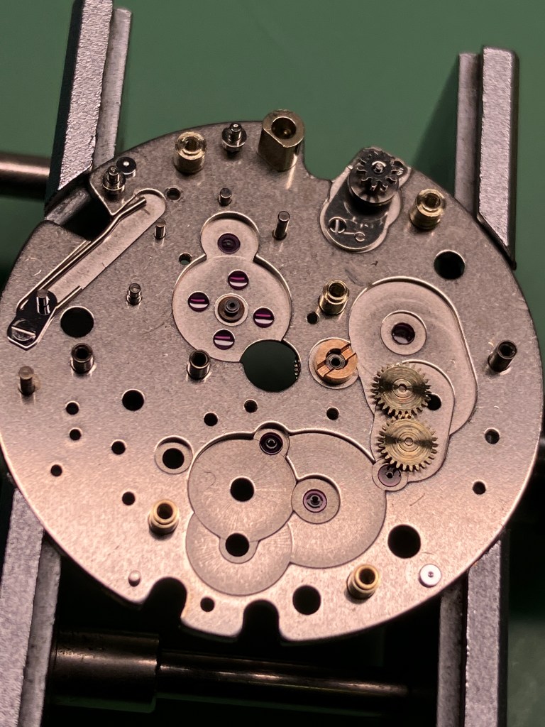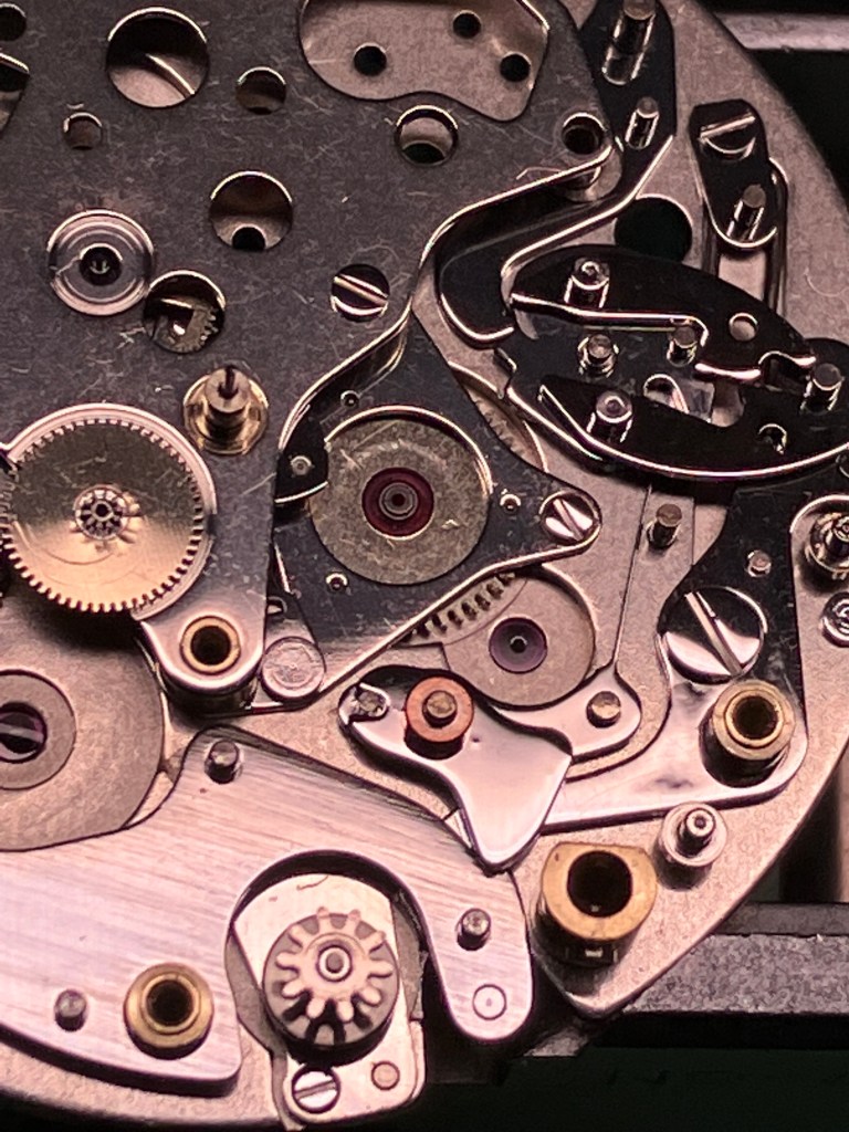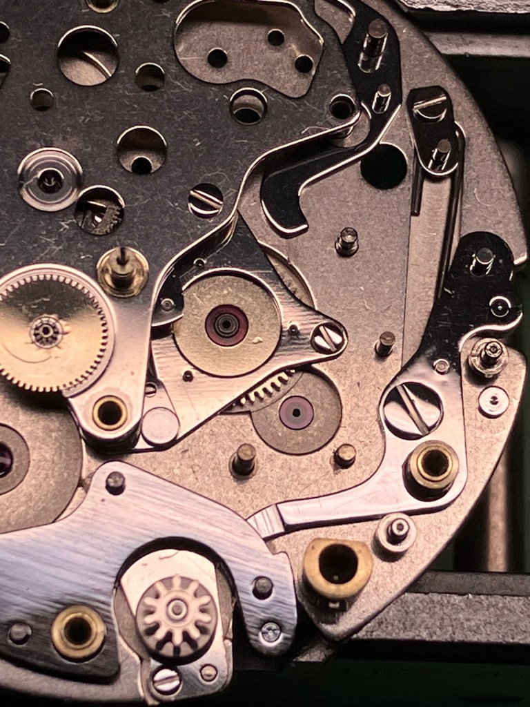 I have circled things to note and look for, small thrust washers, a spring, and a push fit wheel on the driving wheel. The push fit wheel comes apart quite easily from the slot it sits in and needs to be removed to be completely dismantled.